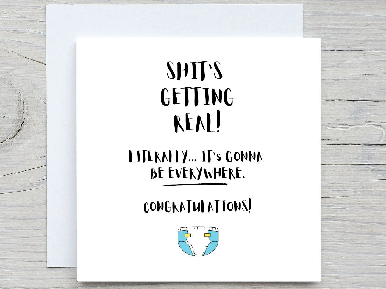 Personalised Baby shower Card, New Born Card, new baby card , pregnancy card, shits getting real