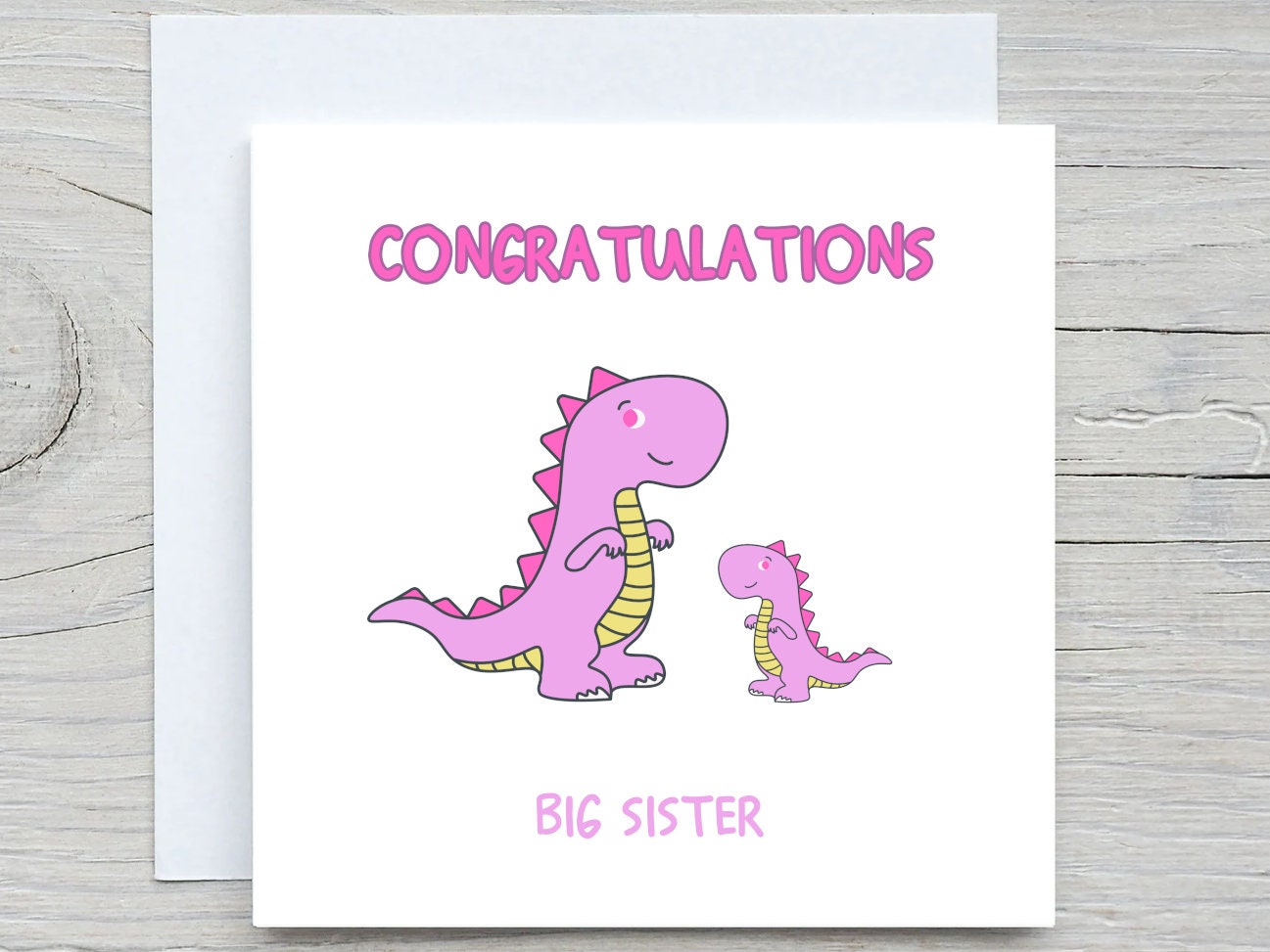 personalised New baby card, Big Sister card, congrats card, to big Sister card, cute dinosaur card