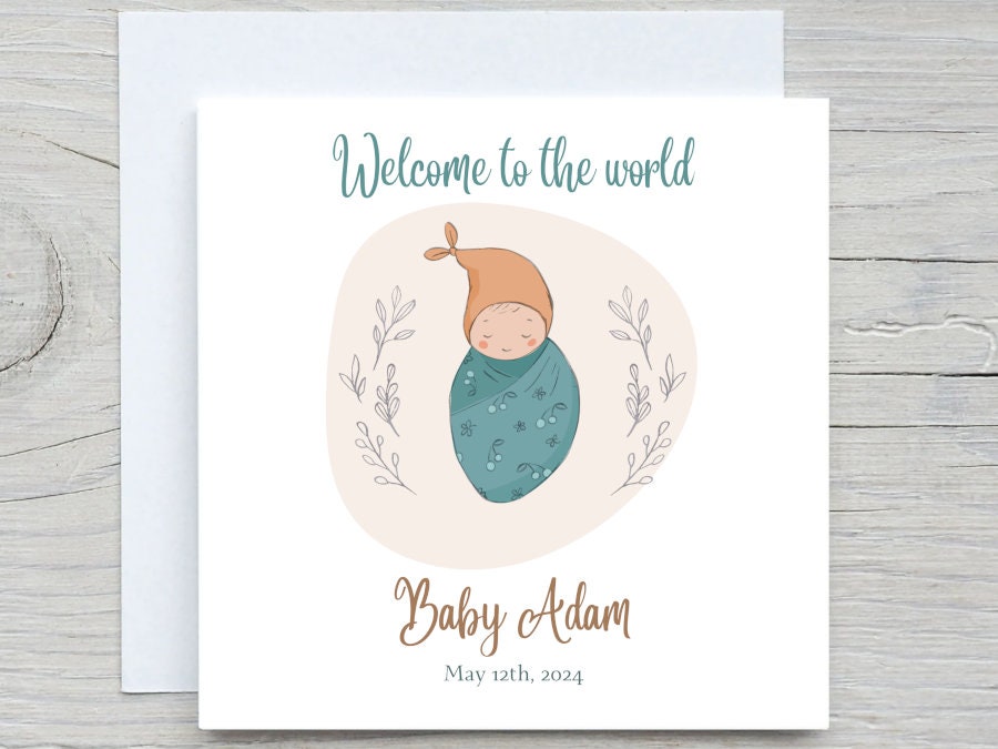 Personalised Welcome To The World New Baby Baby Card, New Parents Card, New baby Congratulations Card, New baby gift