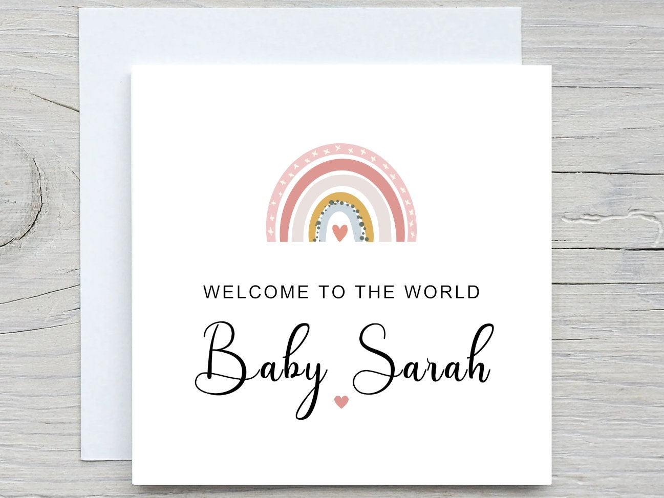 Personalised Welcome To The World New Baby Baby Card, New Parents Card, New baby Congratulations Card, New baby gift, Pink rainbow