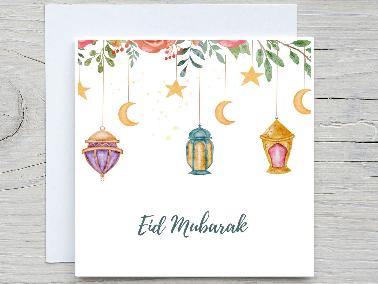 personalised Ramadan Card, Muslim Cards, watercolor lanterns card, Ramadan, Eid