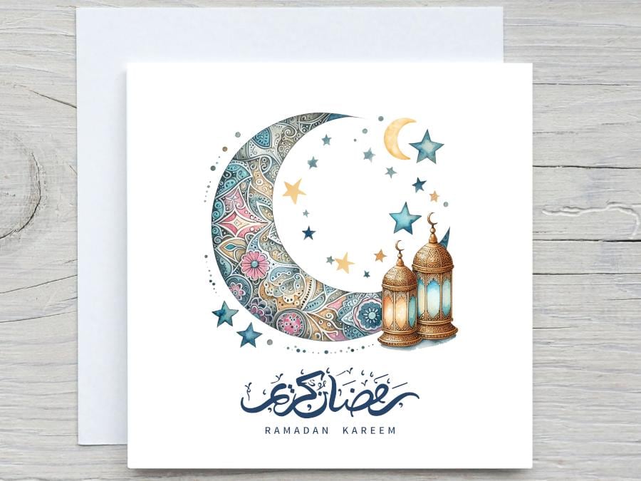 Personalised Ramadan Card, Muslim Cards, watercolor lanterns card, Ramadan, Eid, ramadan kareem, Hilal Card, Ramadan gift