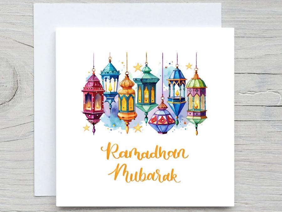 Personalised Ramadan Card, Muslim Cards, watercolor lanterns card, Ramadan, Eid, ramadan mubarak, Hilal Card, Ramadan gift
