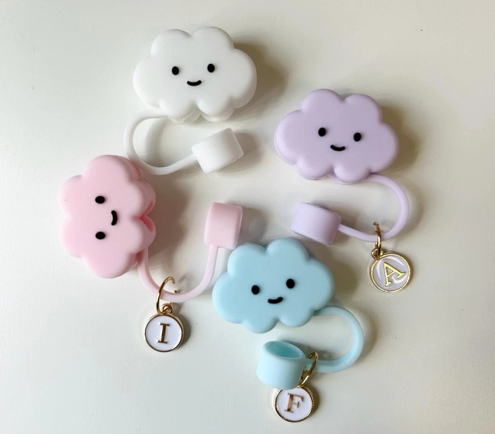 Cloud Straw Topper, Straw Cover Stanley Accessory, personalised Letter Charm