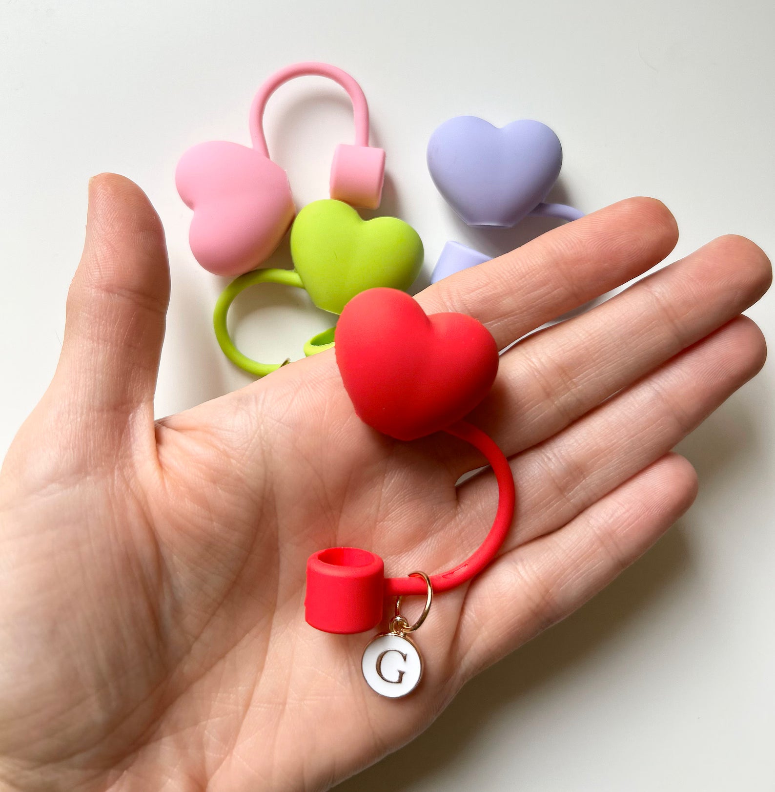 Heart Straw Topper, Straw Cover Stanley Accessory, personalised Letter Charm, Valentine for Stanley
