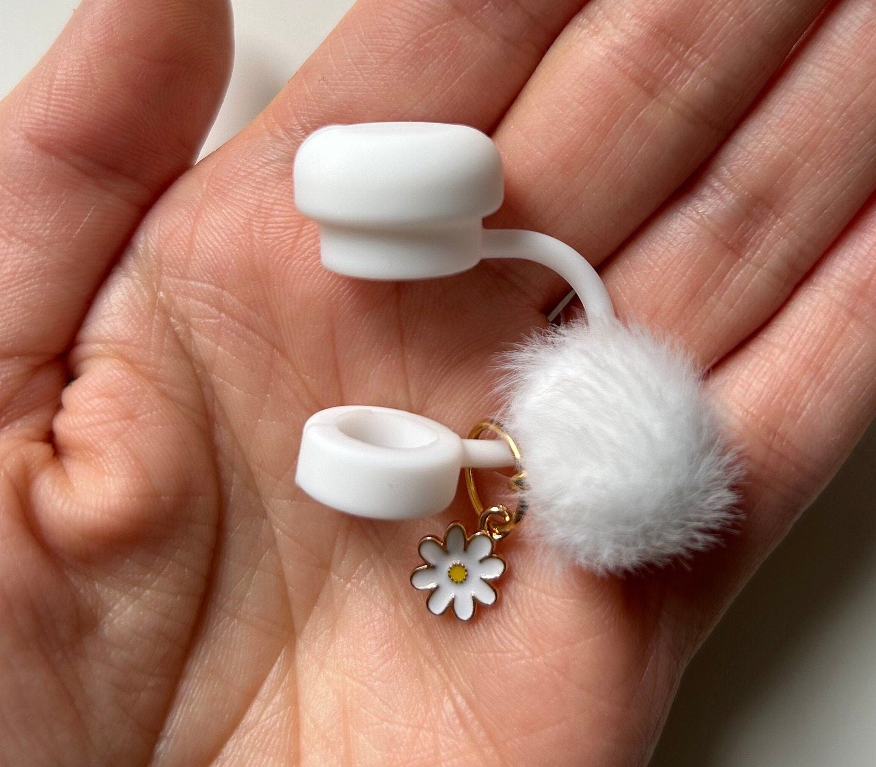 White Minimalist Stanley Accessory Straw Cap, Stanley Topper,Stanley Accessories Straw Cover ,Custom Pom Pom Simple Cup Straw tumbler