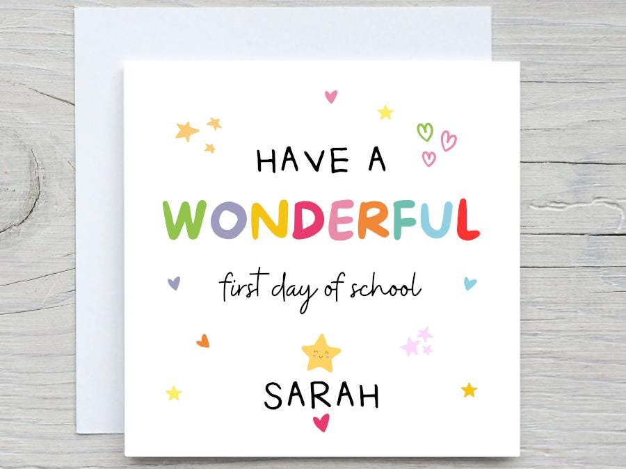 Personalised Back to School Card, New School Good Luck, Back To School Card, Good luck, Happy first day of school, Add name card
