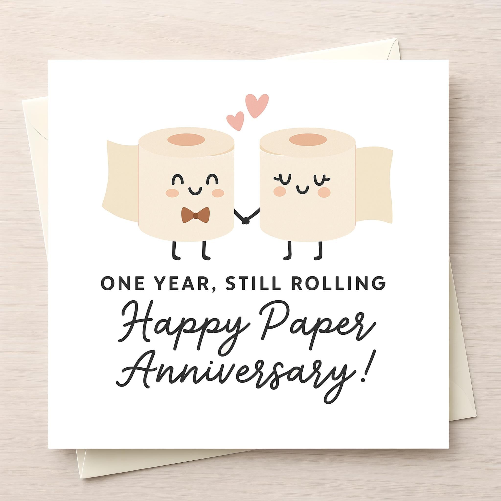 1st Anniversary Card Funny One Year Still Rolling | Cute Paper Anniversary Toilet Paper Pun | Love Card for Him or Her
