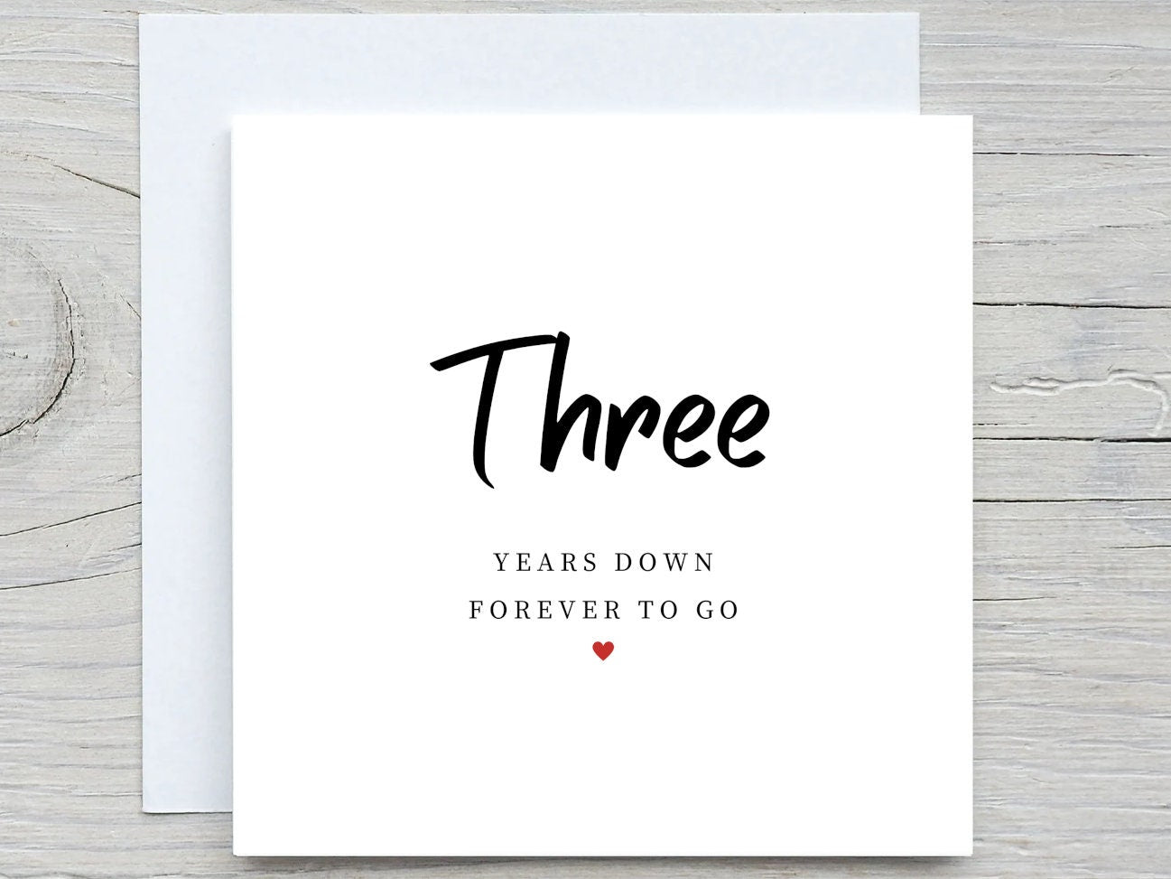 3 years down, forever to go card, three year anniversary card, 3rd anniversary card for partner, Anniversary gift