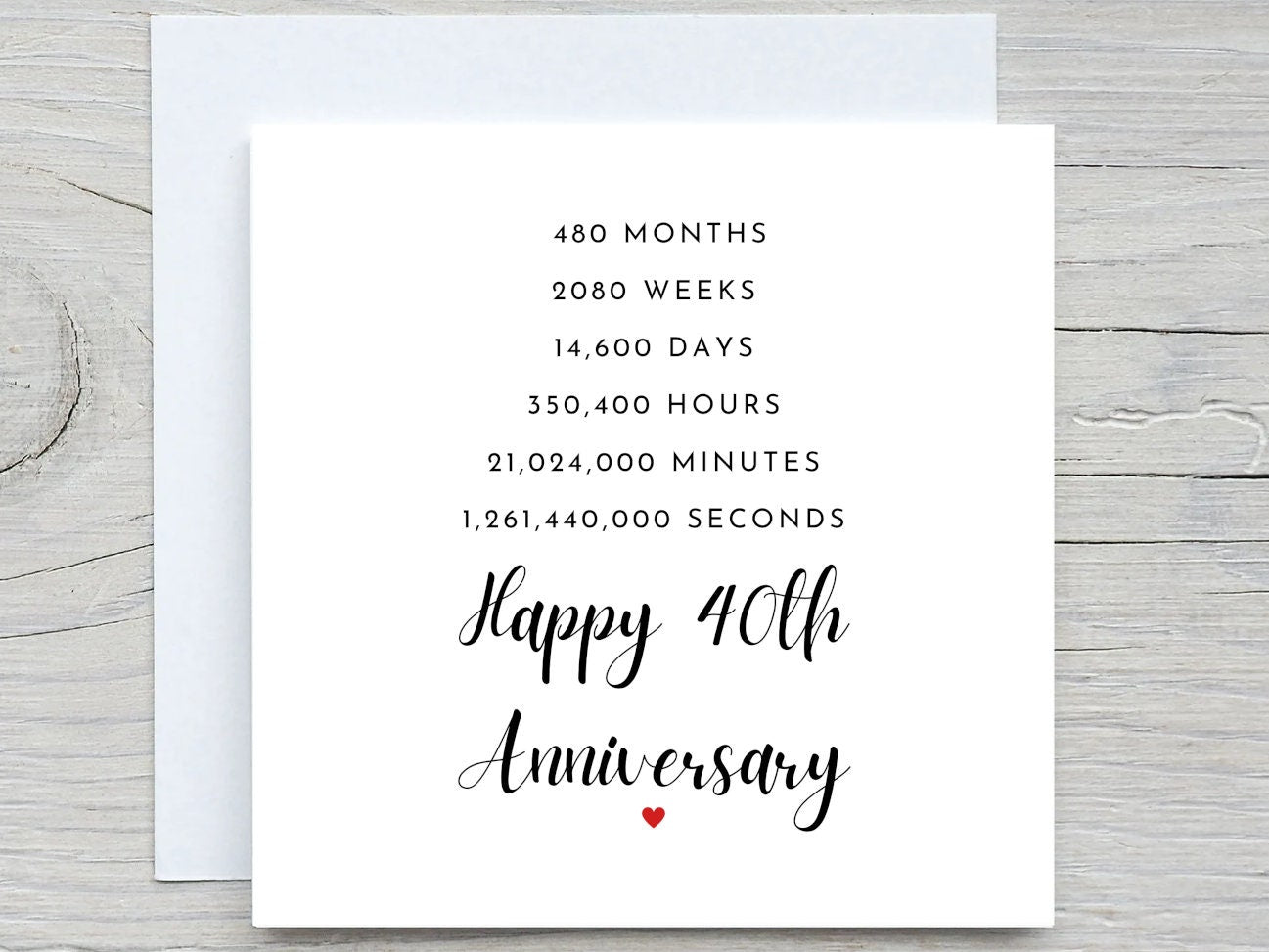 40th Anniversary Card, Personalised anniversary card, 40 years married card, Ruby Anniversary