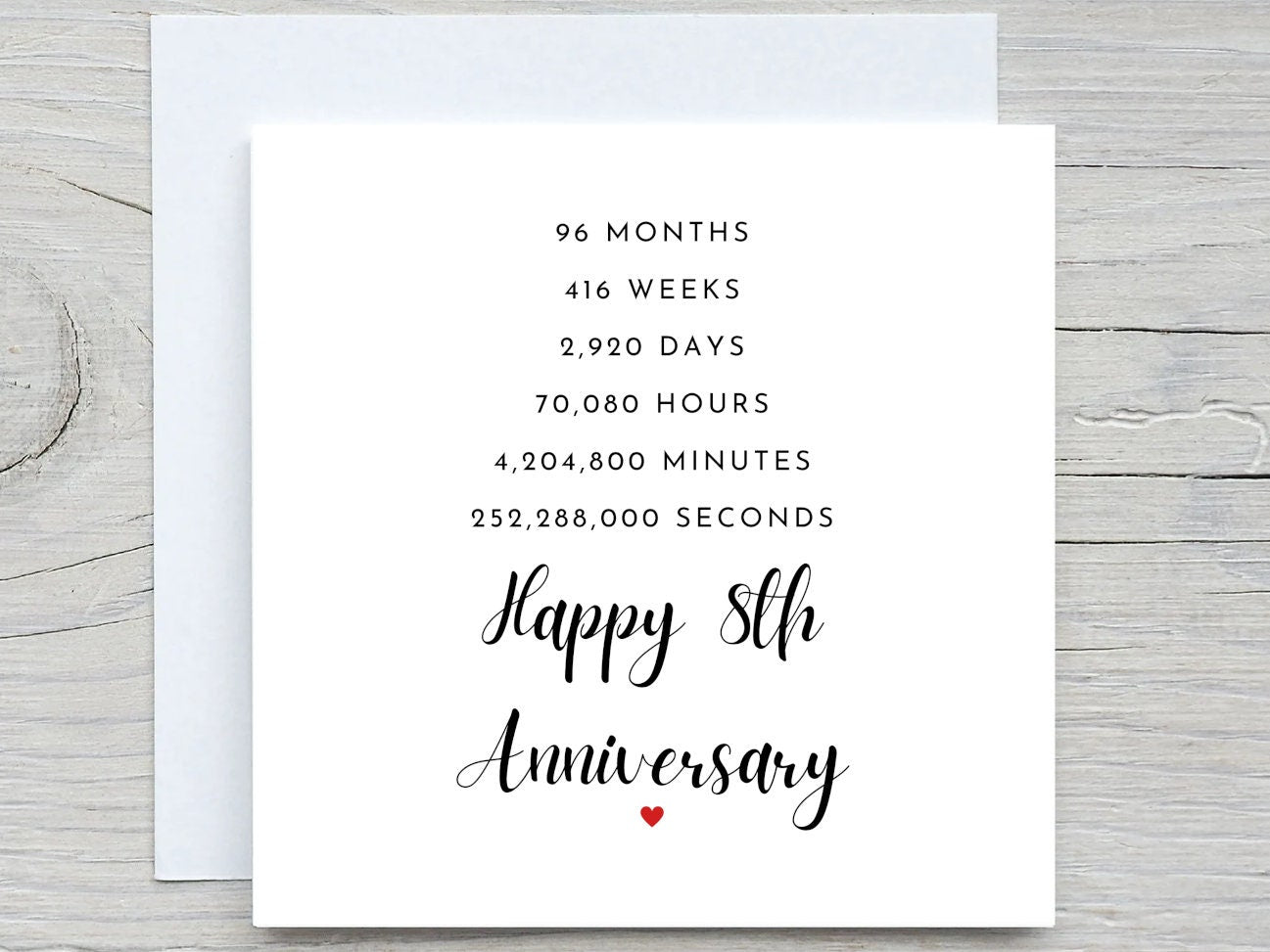 Anniversary Card, Personalised anniversary card, 8th Anniversary card, Bronze Anniversary, 8 years together wedding anniversary