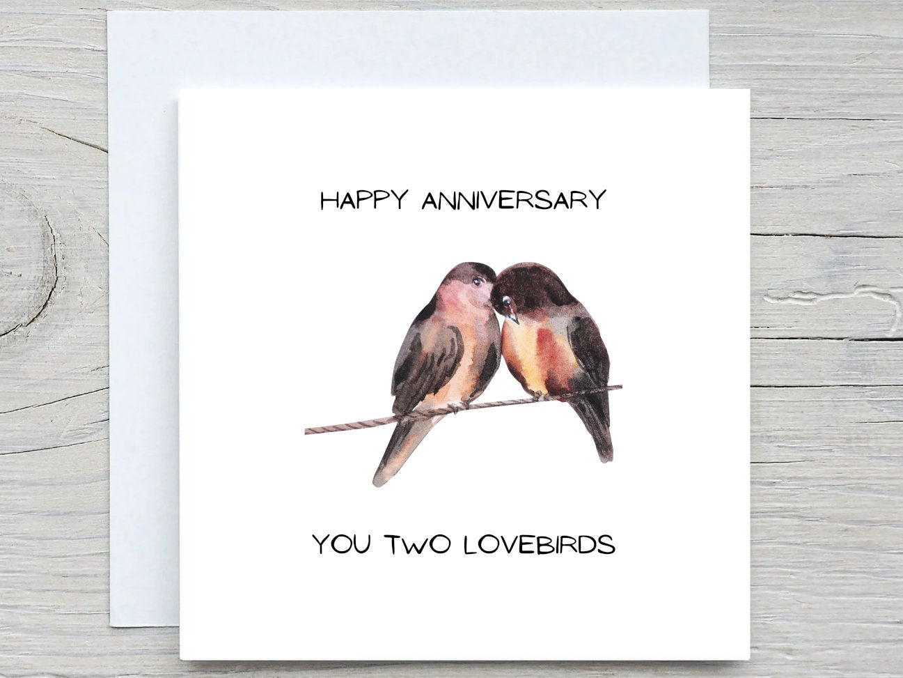 Anniversary Card, Personalised Happy anniversary card, Lovebirds card