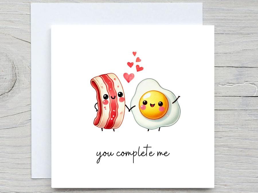 Anniversary card, You complete me, romantic card, i love you , valentines day card, anniversary card, for partner, wife, husband, Egg Bacon