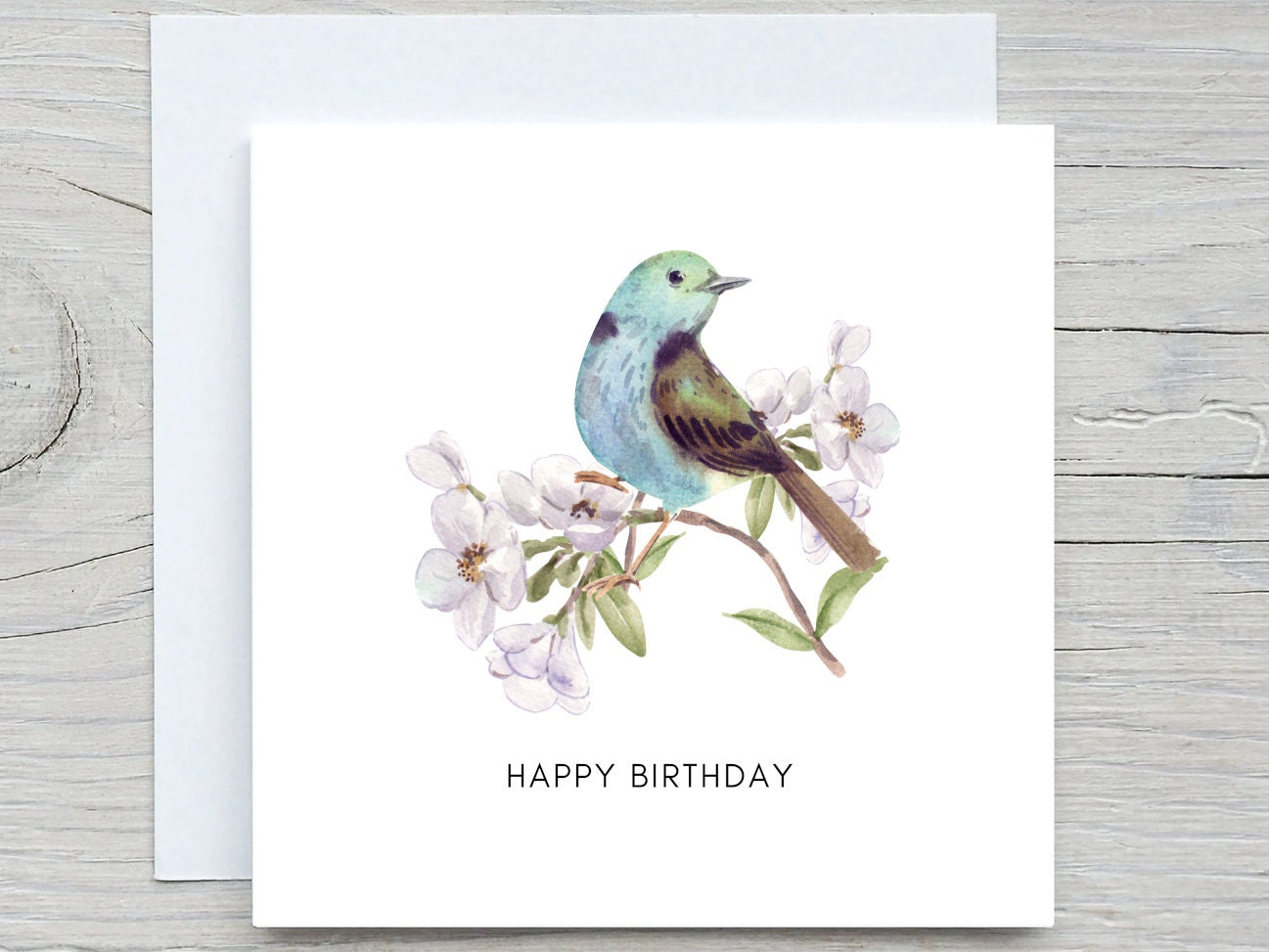 Birthday Card, Birthday greeting card, Cute Bird Card, Cute Birthday card, Bird and Flowers birthday card
