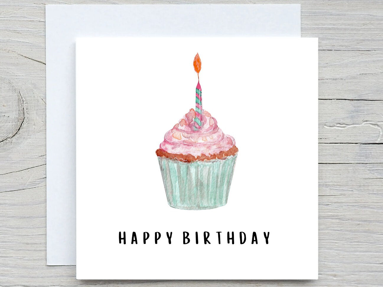 Birthday Card, Cute card, Happy Birthday card, Bright Colorful Birthday card, for friend card, cupcake candle card