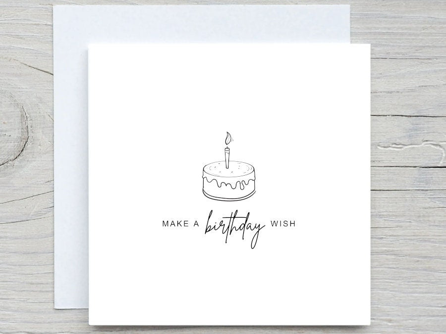 Birthday Card, Cute card, Happy Birthday card, Make a Birthday Wish card, for friend card, cake candle card, minimalist birthday card
