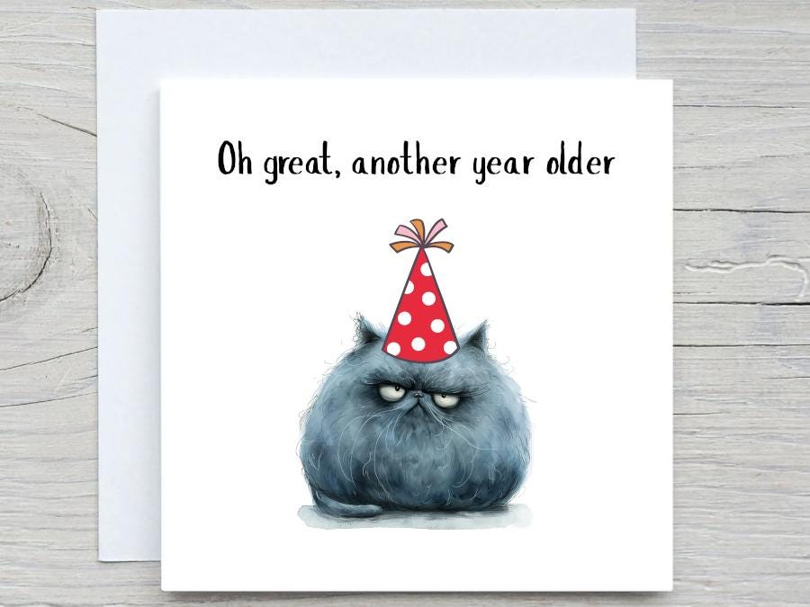Birthday Card from grumpy cat, Funny Birthday card, Happy Birthday card, Another year older, card from cat, rude birthday card, custom gift