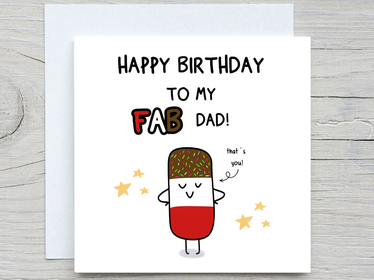 Dad Birthday Card , To My Fab Dad, Funny Birthday Card, For Dad, From daughter, from Son, Dads birthday card. popsicle card