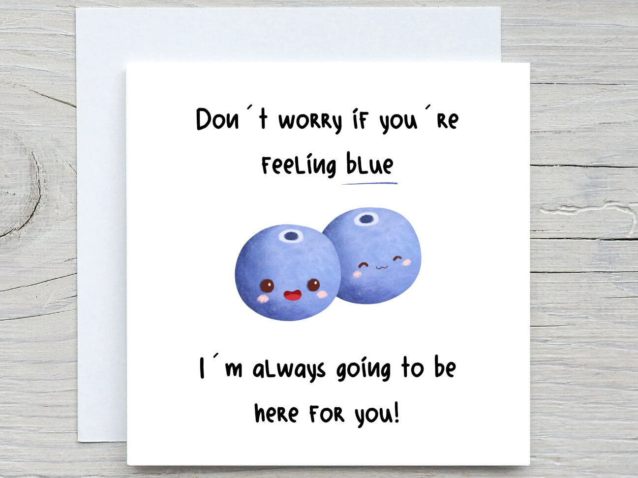 Personalised Sympathy card, If you feel Blue card, Here for you card, sad time card, sending you love, get well soon card, cute blueberry