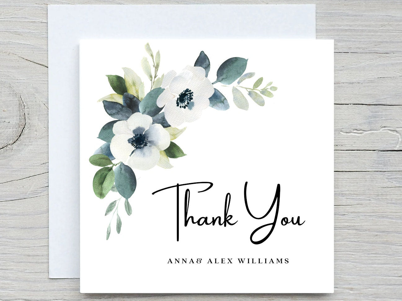 Thank you Card, personalised names thank you card, wedding thank you card, floral card, elegant flower card