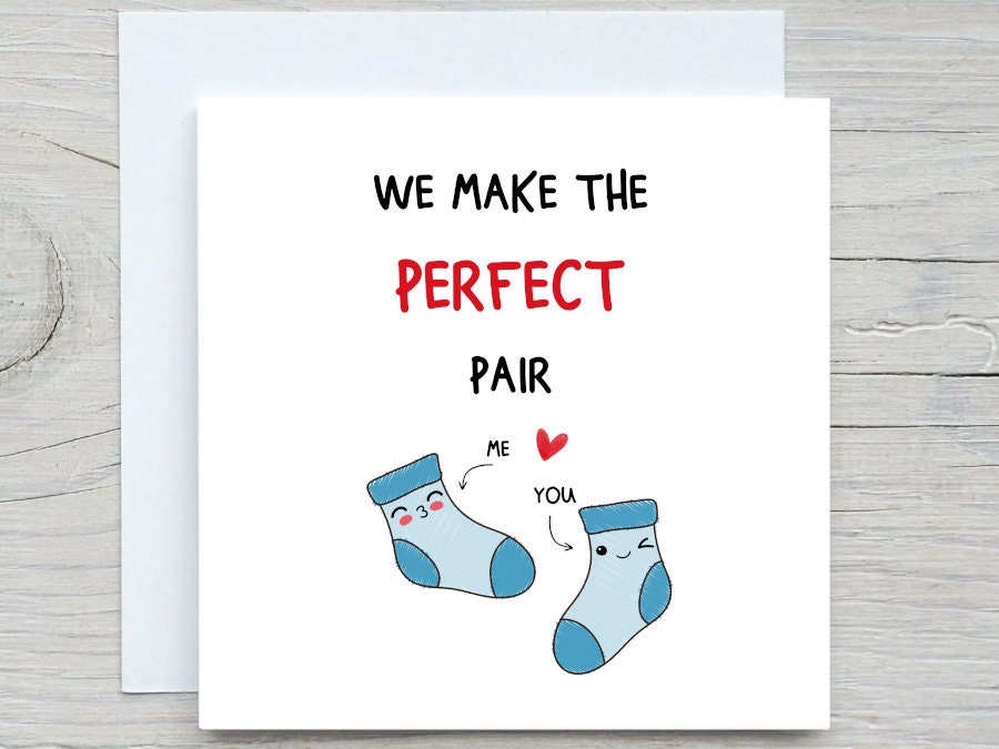 Valentines day card, for lover card, Card for her, care for him, we make the perfect pair, socks card, card for partner, we match card